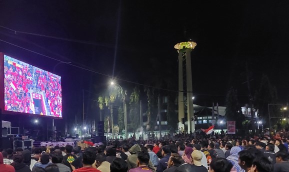 Ribuan Warga Kukar Nobar Timnas U-23 di Videotron Simpang Rumjab Bupati