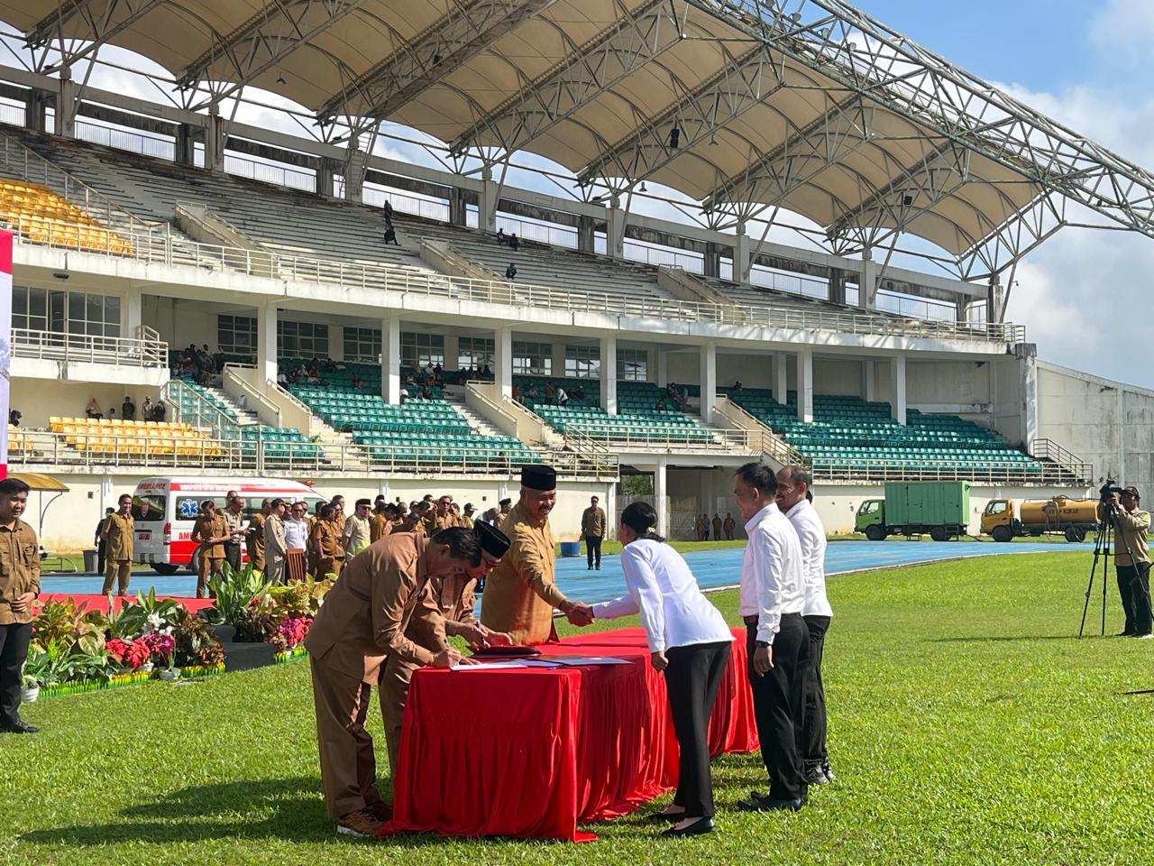 jurnalmahakam.com, KUKAR – Pemerintah Kabupaten Kutai Kartanegara (Kukar) menorehkan sejarah baru dalam reformasi birokrasi dengan melantik 3.870 Pegawai Pemerintah dengan Perjanjian Kerja (PPPK) secara massal di Stadion Aji Imbut, Tenggarong, Senin (26/5/2025).
