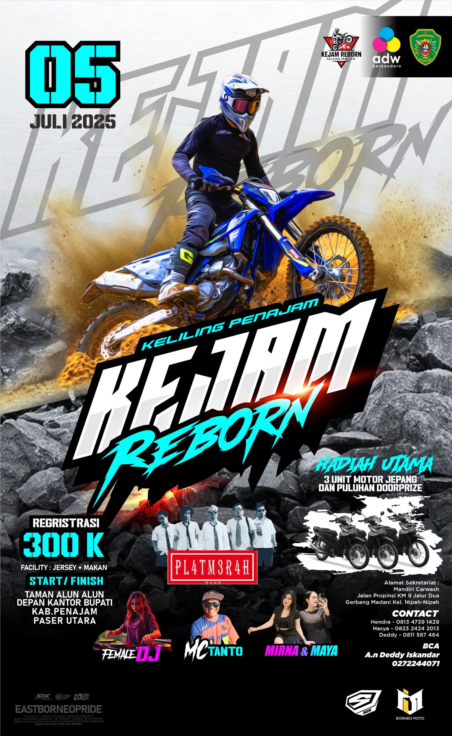 Kejam Reborn 2025 tidak hanya menawarkan trek menantang, tetapi juga akan dimeriahkan dengan berbagai hiburan dan hadiah menarik. Panitia telah menyiapkan tiga unit motor Jepang sebagai hadiah utama, ditambah berbagai hadiah menarik lainnya untuk para peserta. Acara ini juga akan menghadirkan bintang tamu seperti band Plat Merah, Female DJ, serta MC ternama seperti Tanto, Mirna, dan Maya yang siap menghibur para pengunjung.