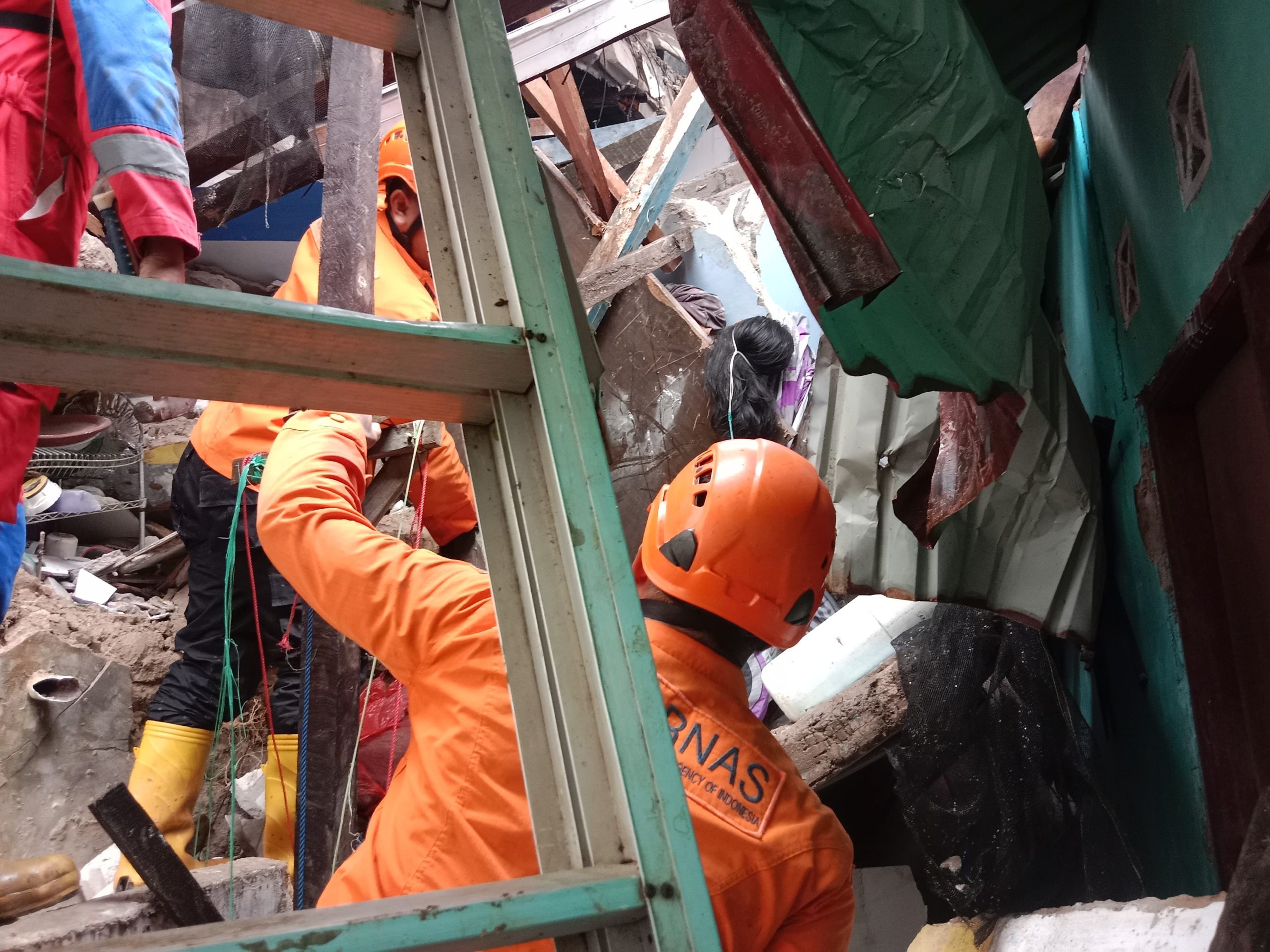 Laporan awal menyebutkan bahwa enam orang tertimbun, namun empat korban berhasil diselamatkan oleh warga dan tim gabungan, sementara satu korban lainnya, Sutiah (40), hingga saat ini masih dalam proses pencarian oleh tim SAR.