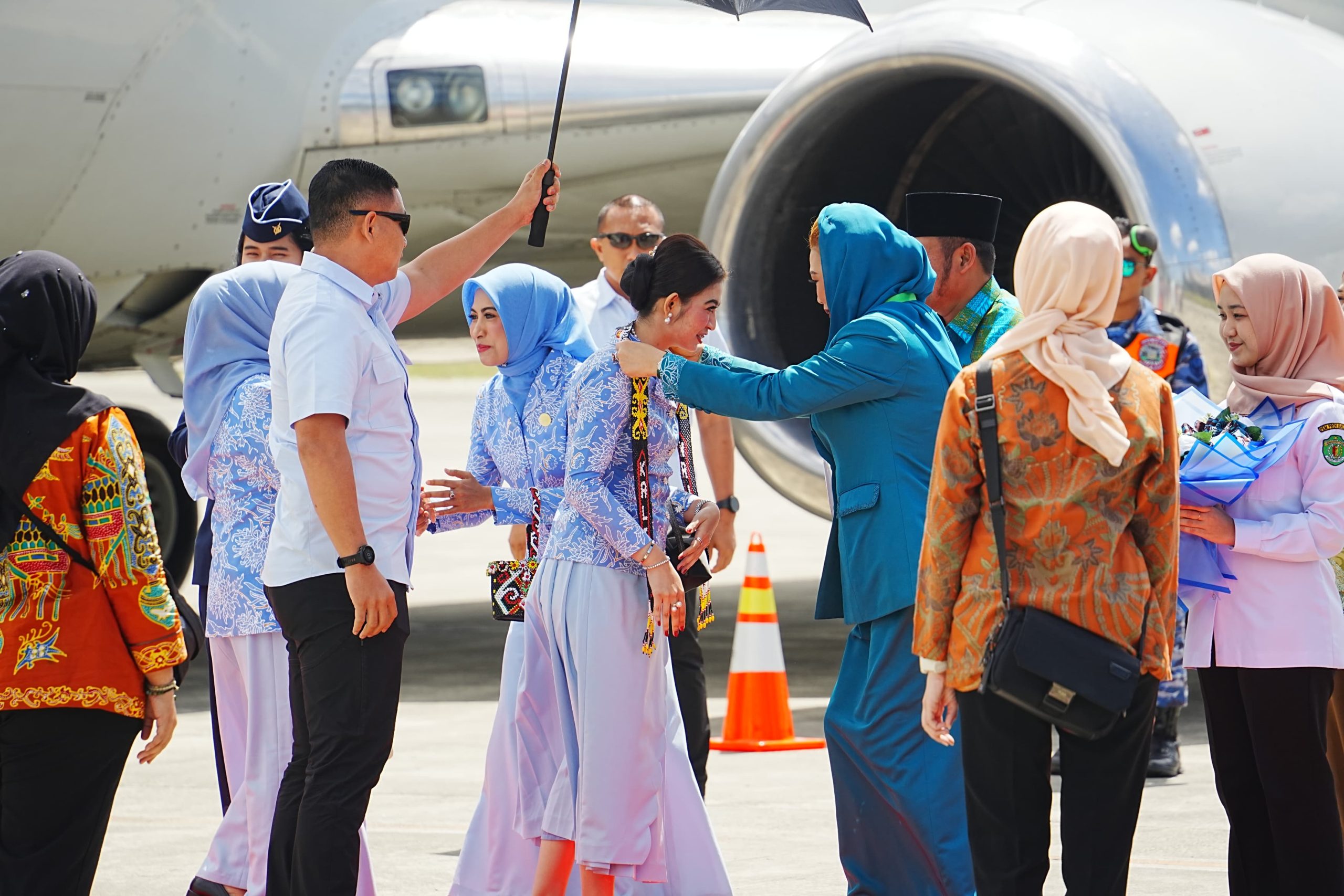 Setelah mendarat, Ibu Selvi Gibran dan rombongan langsung menuju lokasi kegiatan di Convention Hall Komplek Stadion Kadrie Oening, Samarinda. Di tempat tersebut, sejumlah agenda kerja dijalankan sebagai bentuk dukungan terhadap sinergi pembangunan antara pusat dan daerah, sekaligus mendorong peran aktif perempuan dalam pembangunan bangsa.