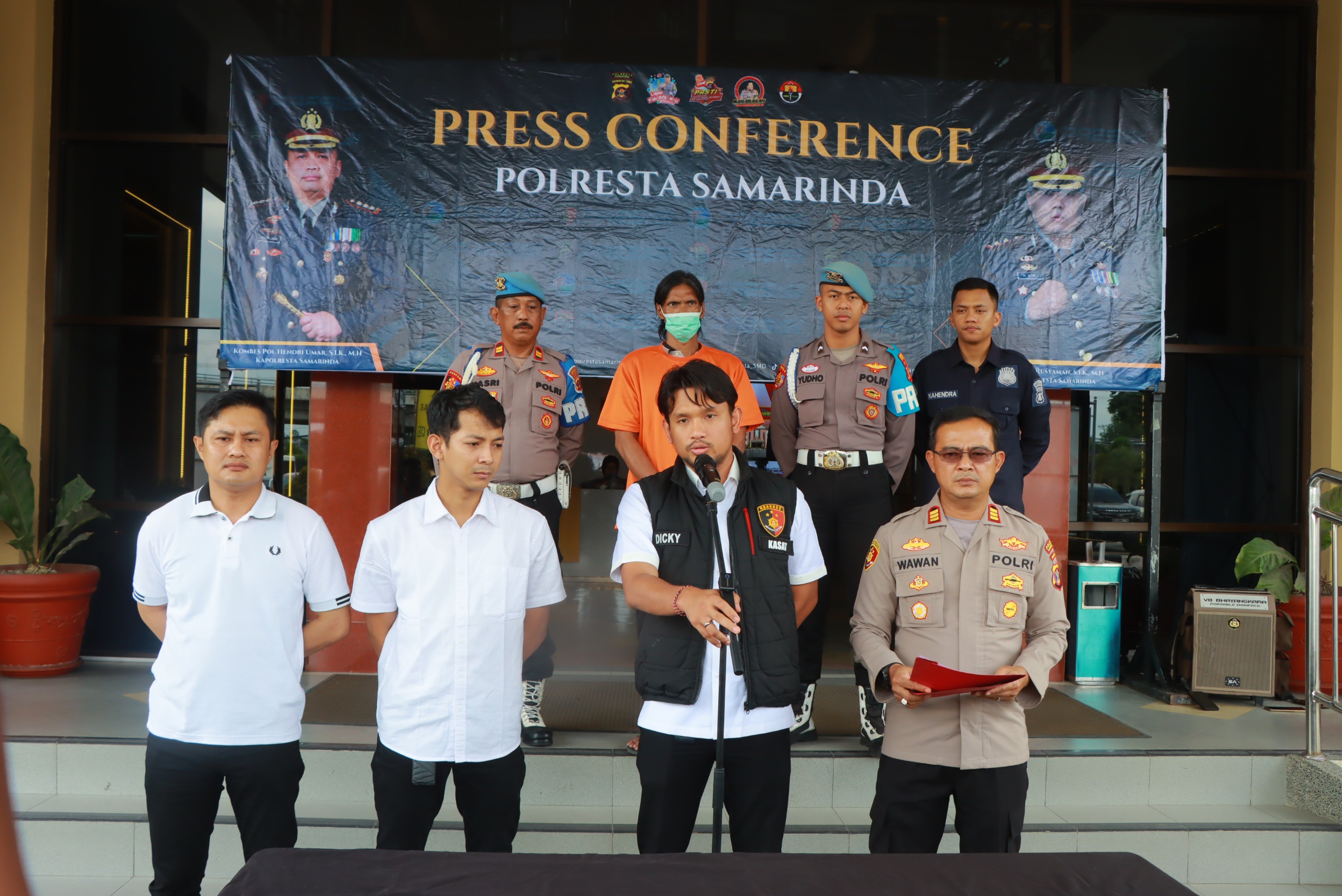 Konferensi pers tersebut dipimpin langsung oleh Kasat Reskrim Polresta Samarinda, AKP Dicky Anggi Pranata, S.I.K., M.Si., CPHR., CRHA, yang berlangsung di Lobby Polresta Samarinda. Kegiatan tersebut juga dihadiri oleh Kapolsek Samarinda Ulu, Kanit Eksus Polresta Samarinda, Kanit Reskrim Polsek Samarinda Ulu, Kanit Provos Polresta Samarinda, serta anggota Humas Polresta Samarinda.
