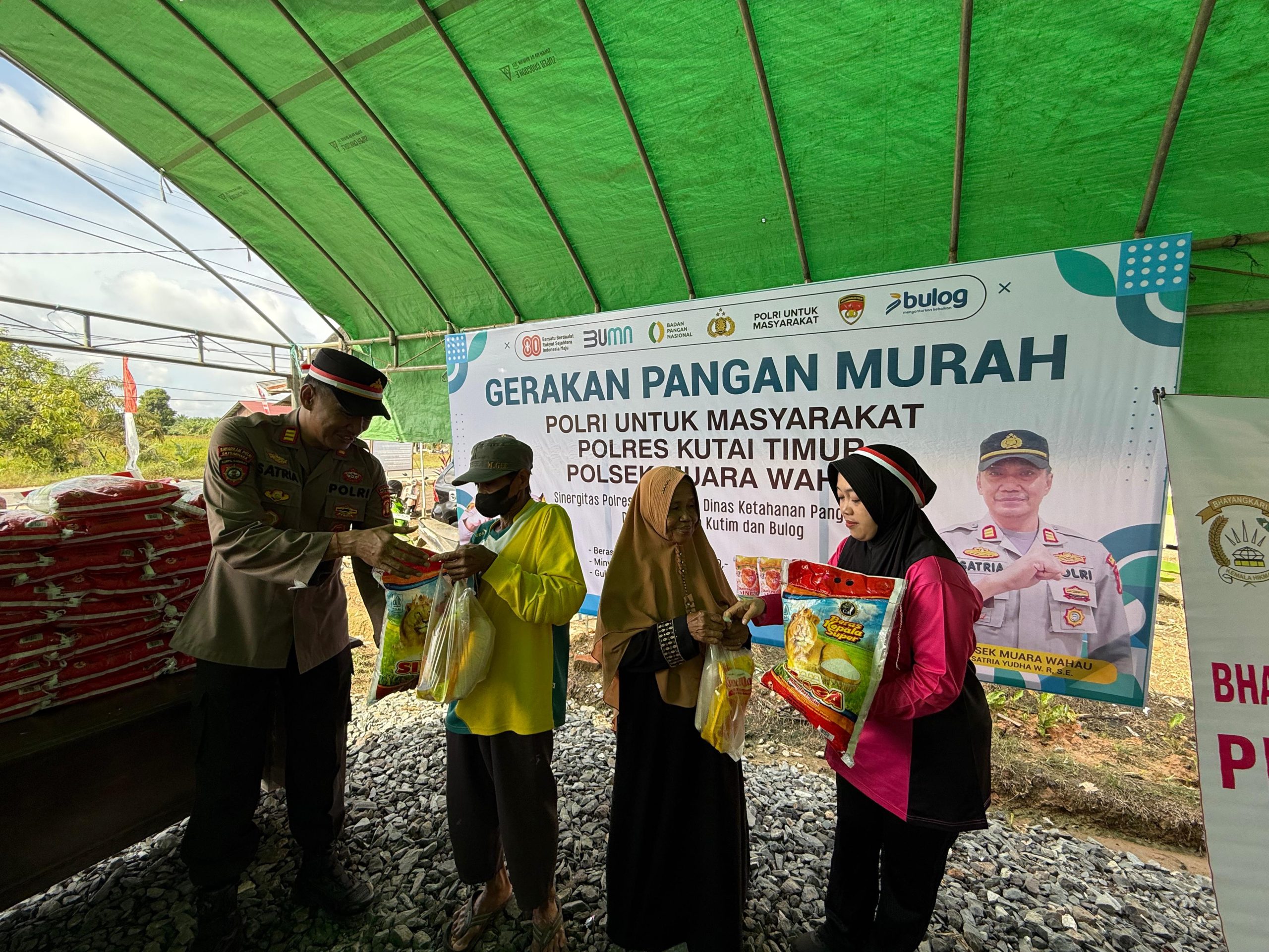 jurnalmahakam.com, Kutai Timur – Polsek Muara Wahau melaksanakan kegiatan Gerakan Pangan Murah (GPM) yang dipimpin langsung oleh Kapolsek Muara Wahau, AKP Satria Yudha WR. Dalam kegiatan ini, masyarakat setempat mendapatkan kesempatan membeli paket bahan pokok (bapok) dengan harga lebih terjangkau. Sebanyak 100 paket bapok disediakan, terdiri atas beras premium kemasan 5 kilogram, minyak goreng 1 liter, dan gula pasir 1 kilogram. Seluruh paket dijual dengan harga Rp108.000.