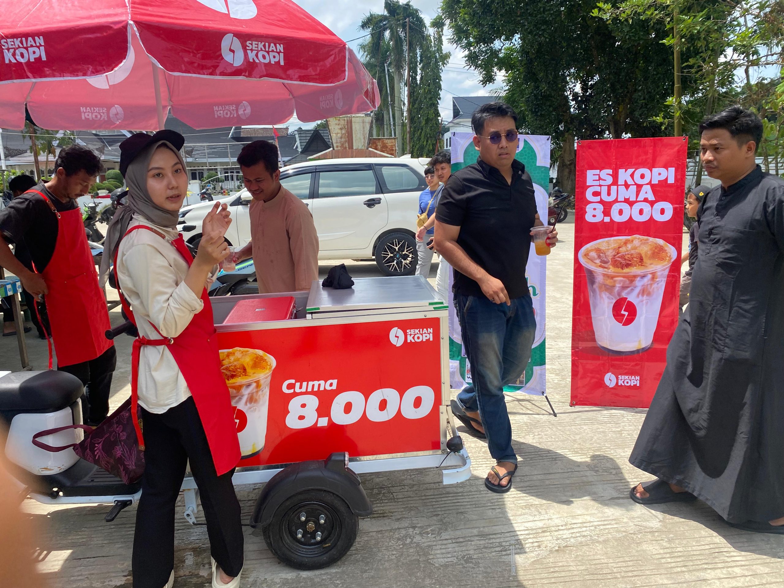 Sebanyak 300 cup minuman disiapkan khusus pada kegiatan sosial tersebut. Dari jumlah itu, 200 cup berisi kopi gularen yang menjadi produk unggulan Sekian Coffee, sementara 100 cup lainnya adalah leci tea yang segar. Keduanya langsung ludes dibagikan kepada jamaah yang baru saja keluar dari masjid maupun warga yang melintas di sekitar lokasi.