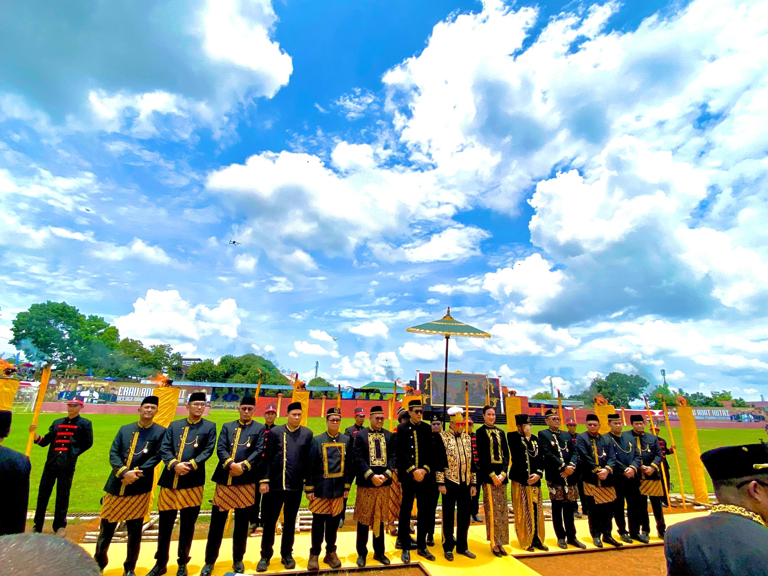Sejak pagi, tribun stadion sudah dipenuhi warga yang datang dengan antusias. Para tamu kehormatan tampil anggun dengan busana adat khas Kutai, sementara masyarakat tampak bersemangat menyaksikan prosesi budaya yang menghubungkan masa lalu dengan semangat kekinian.